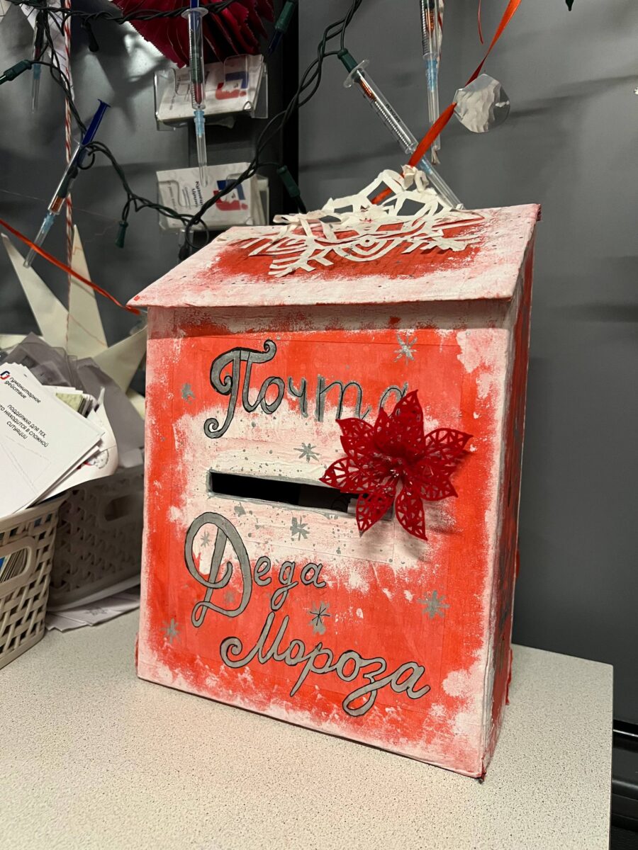 В декабре в одном из наших мобильных пунктов появился волшебный почтовый ящик для писем Деду Морозу. Его придумала, собрала и раскрасила команда Маленького автобуса.