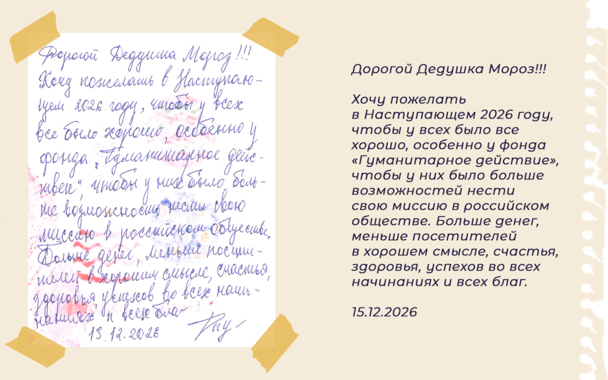 А для вас — как и большинство авторов писем — хотим «просто человеческого счастья» в 2026 году. Пусть у вас будет крепкое здоровье и спокойствие на душе.